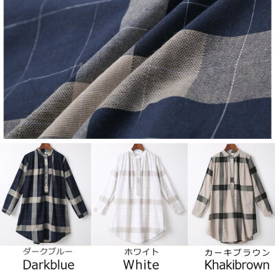 【超目玉】シャツワンピ レディース シャツ ロングシャツ ワンピース チェック柄 ゆったり スタンドカラー XL 2L 3L 大きいサイズ 【5190-jmb050b】【即納&予約:15-20日】 メ込